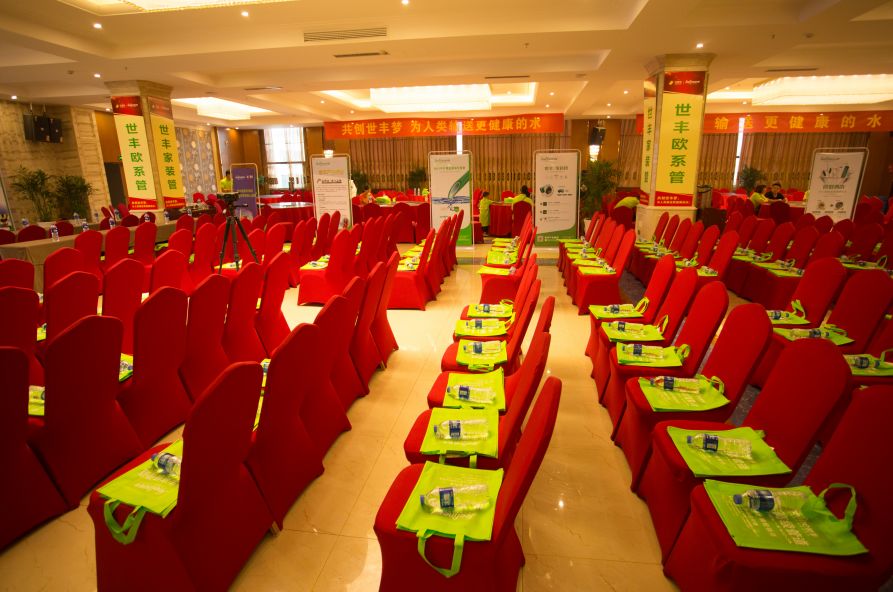 会场内部,细心周到的世丰管道工作人员为每位参会者都准备了伴手礼、矿泉水。
