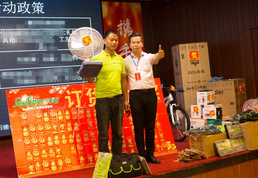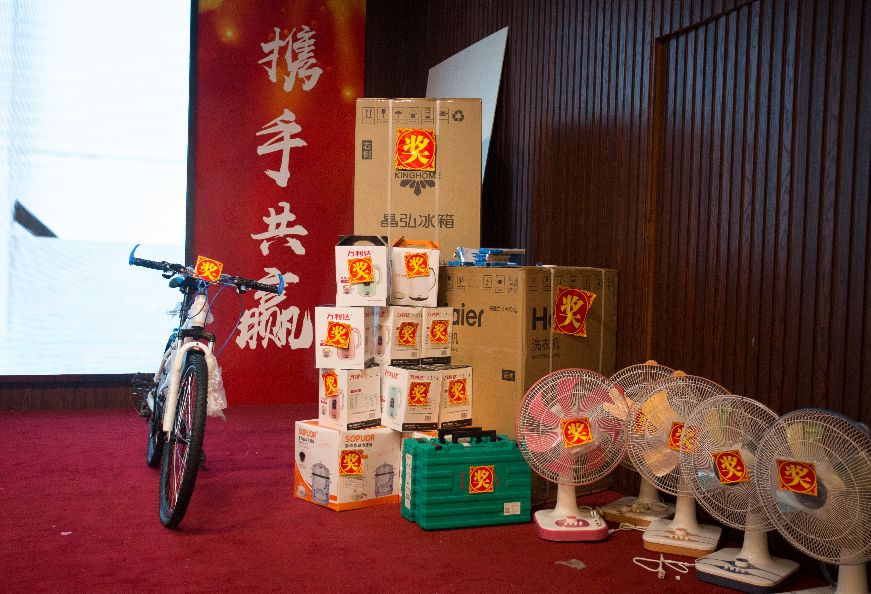 世丰管道为嵩县水电工程师们准备的冰箱、家电等豪礼。
