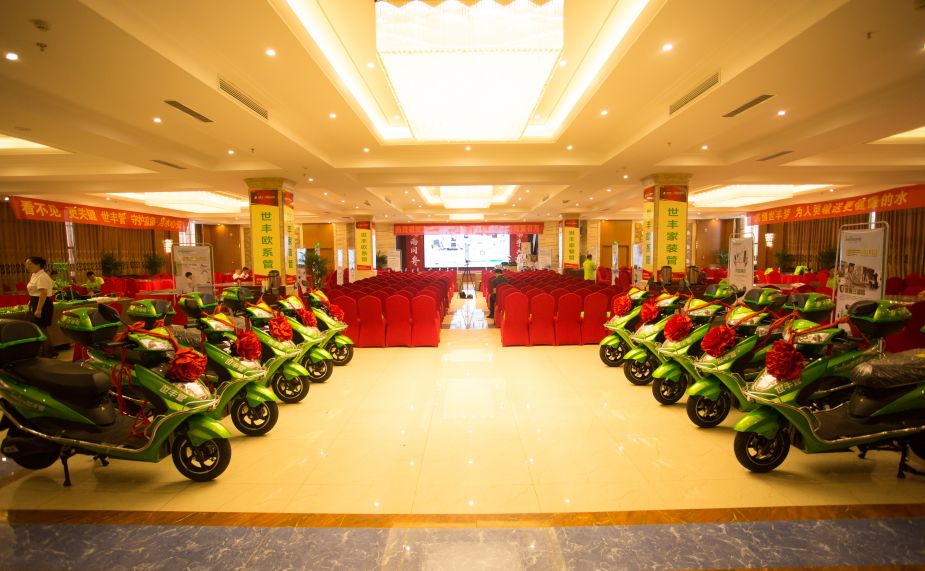 本次世丰管道高级水电工程师会议在嵩县盛世白云酒店如期举行,现场整整两列世丰定制款电动车相对排开,整齐有序,气势宏大。最终这些崭新的电动车将作为回馈赠礼,赠送给水电工程师。