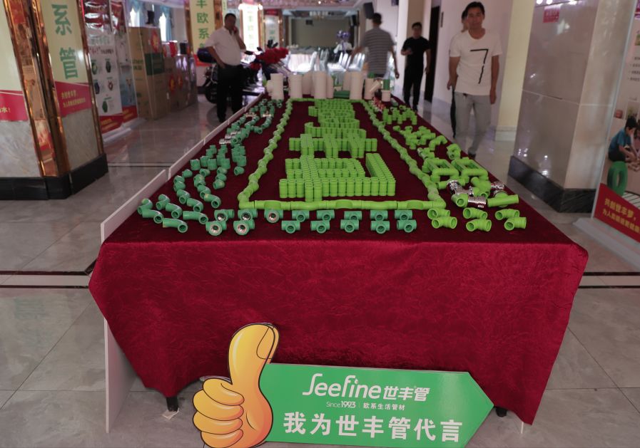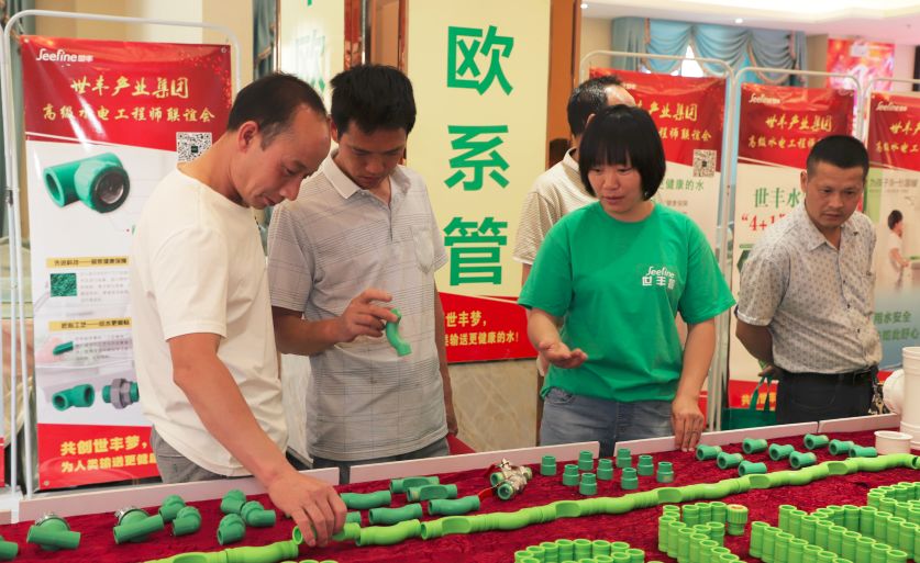 (水电工程师浏览丰富的世丰品牌系列管道,寻求合作商机)