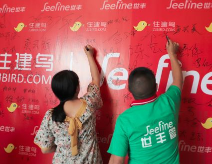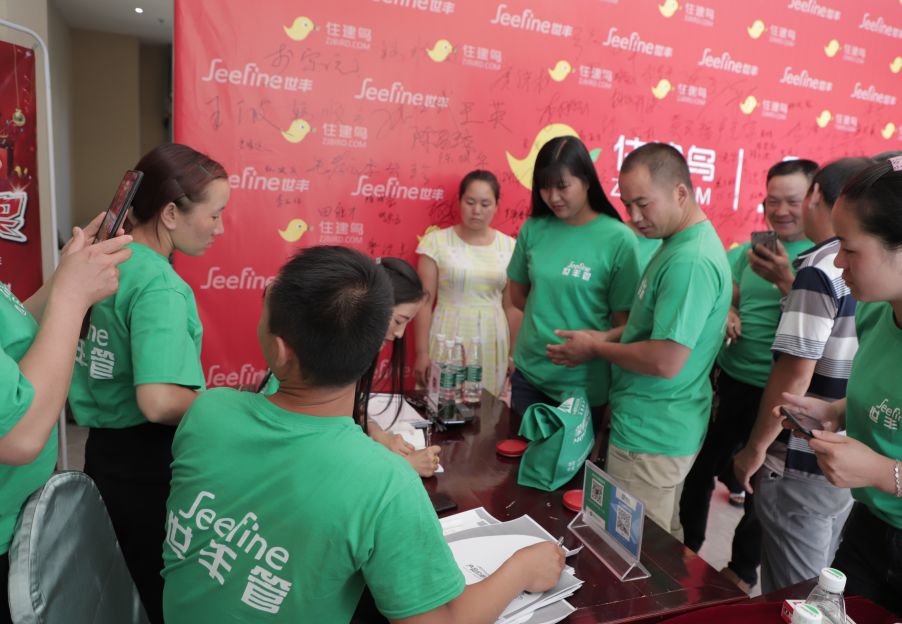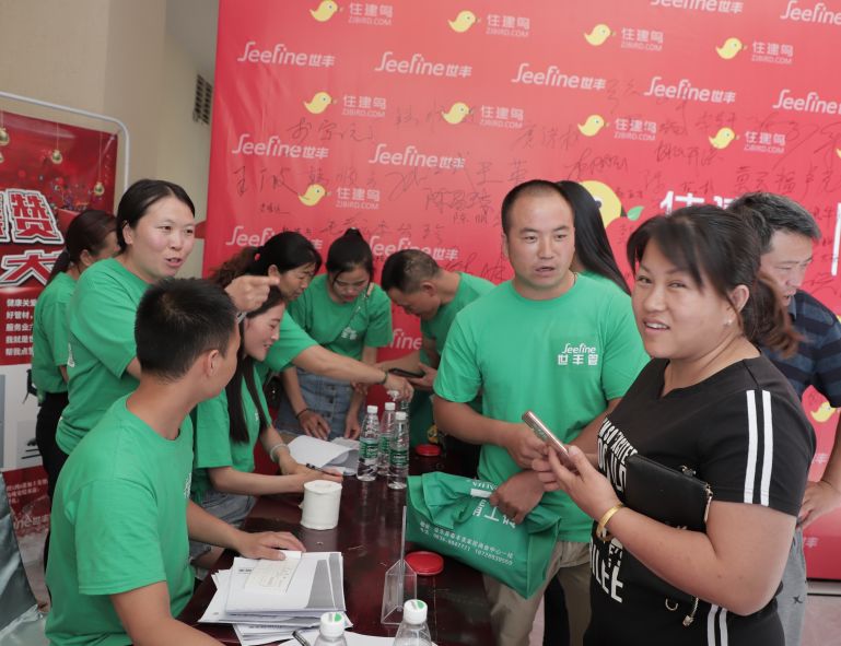 (现场决定签约世丰的合作伙伴围拢在打款处)