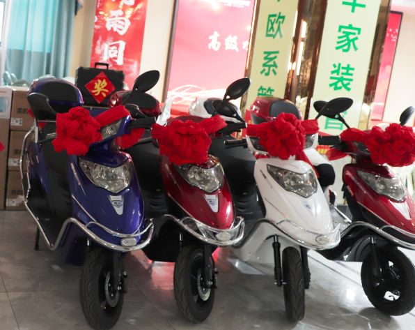 (崭新的电动车等待着幸运的水电工程师领取)