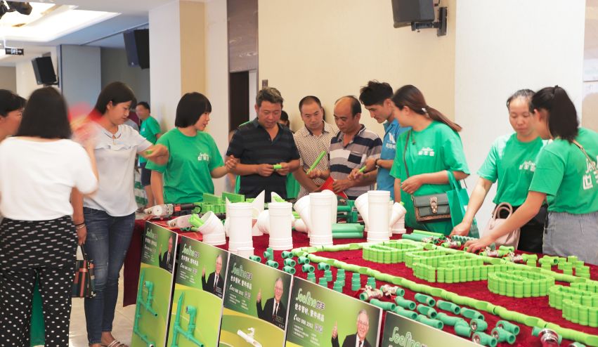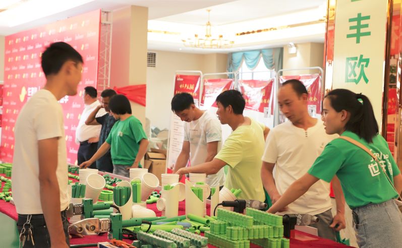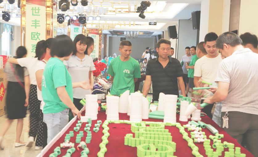 (水电工程师围拢在世丰品牌系列管道展区)