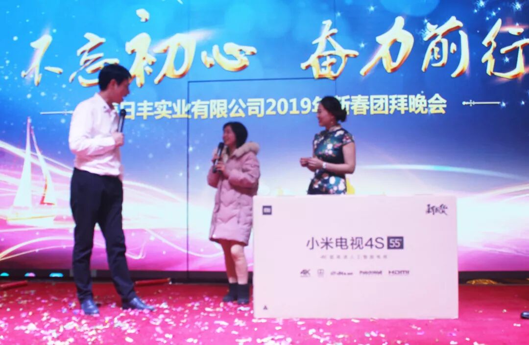 现场大屏幕开始播放“旺狗报喜辞旧岁,金猪纳福迎春来”,26年风风雨雨,世丰家人万众一心,推动公司蓬勃发展,业绩节节攀升。