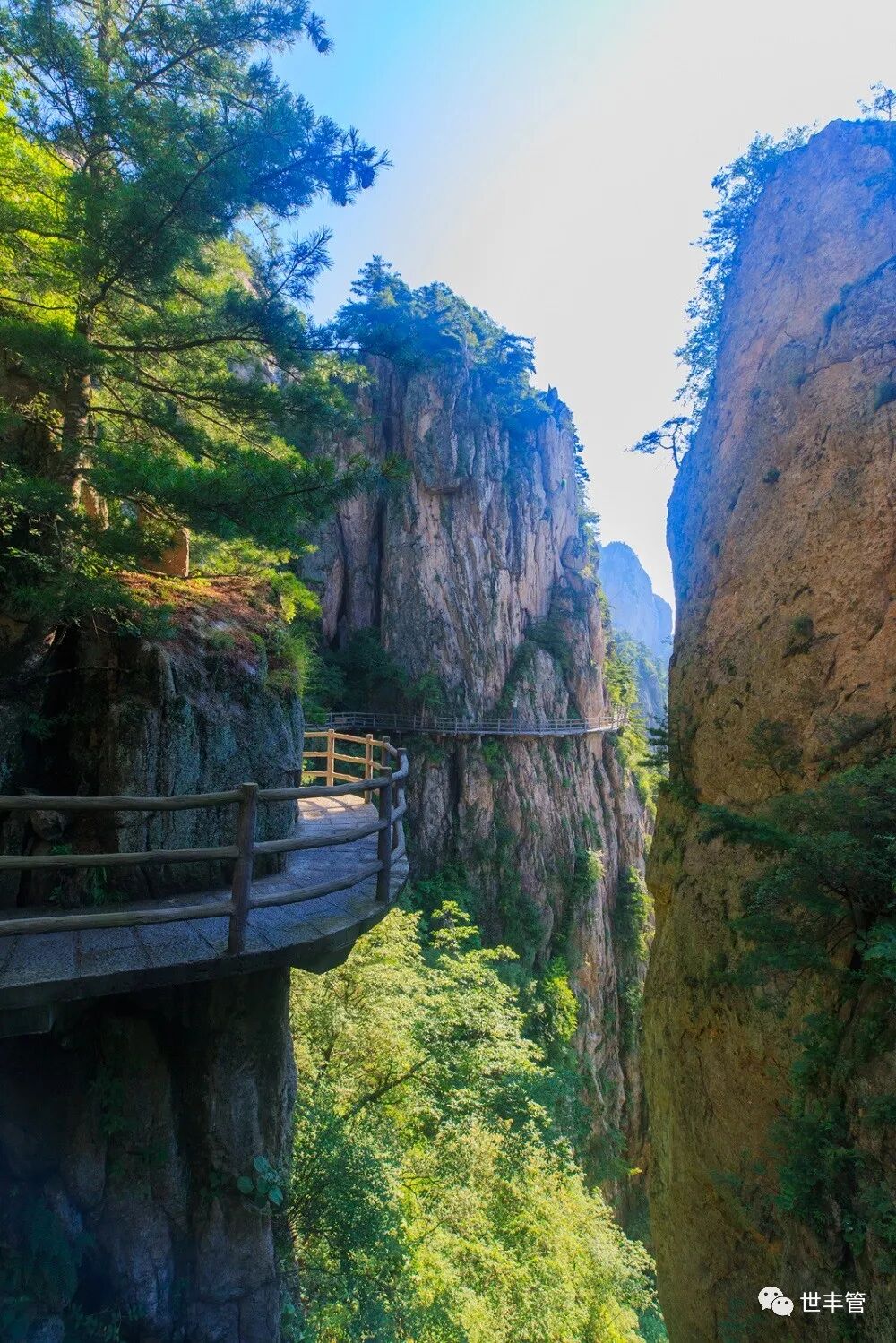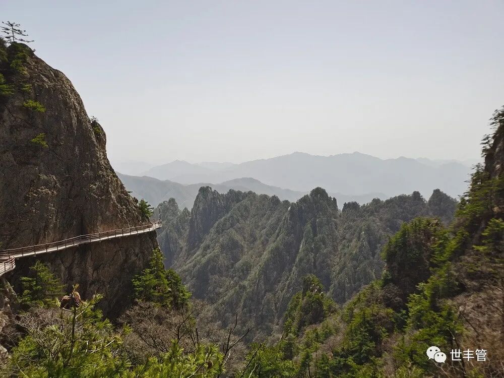 其实,我们走上栈道,就触摸到了老君山的画卷,只是一种惊喜和折服,迅速把我等拉进画面中了,以至于无视了路途上撑起这幅巨型画作的一根根通天画轴。我们用明亮的眸子,掀开一页页绝美图画,翻看着老君山沁人心脾、荡涤心灵的天书画报。