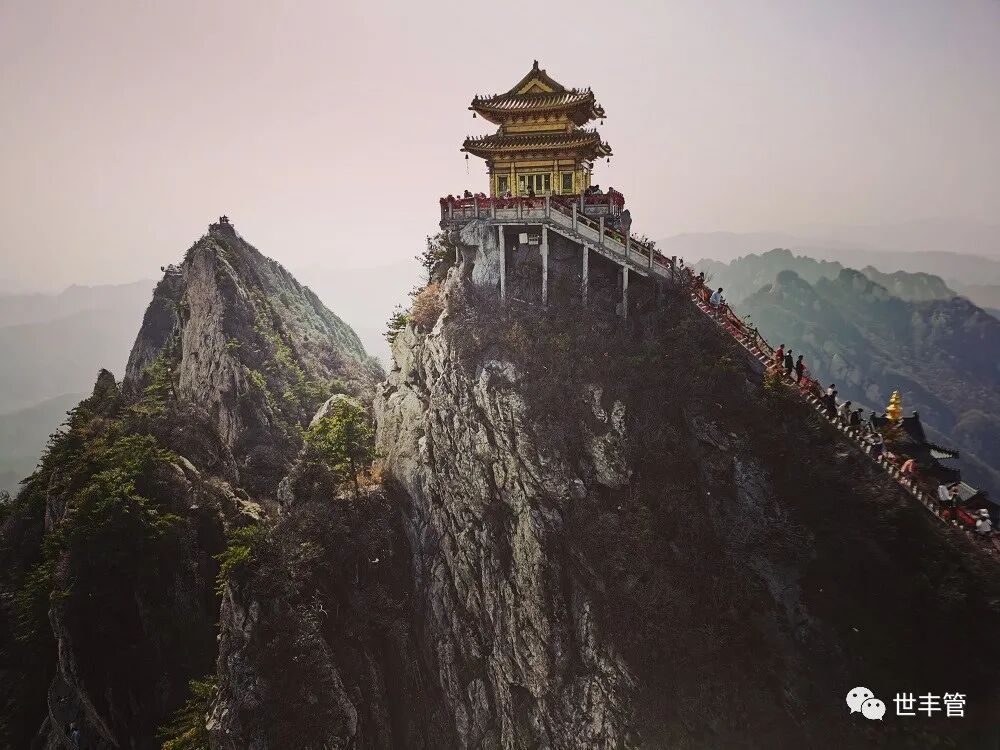 或者说,老君山本是浑然一体的山水画,由多个高耸入云的山石充当画轴,将其悄然卷好藏实,待到贵客来访,才盛情地展示家珍,引来无数回荡山谷的艳羡惊叹和飞向世界的自拍图景。如此看来,与道观群玉皇顶遥相呼应的辉煌建筑,之所以取名“亮宝台”,也许不仅仅是商人们祈祷生意兴隆的圣地吧!