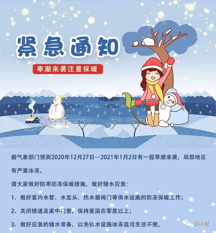 寒潮来袭,世丰管陪你安全过冬!