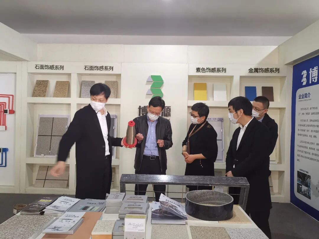 在世丰产业集团,白部长详细了解了企业发展进程及未来规划,期间叶总裁向各位领导详细介绍了集团旗下世范乐健新材料---玄武岩系列产品,并表示将邀请国内外新材料方面的专家,在金山工业区设立新材料总部和研究院,不断夯实新材料,把新材料做精做强,让新材料在金山生根,从而替换现在各行业的重污染材料,减少环境污染。